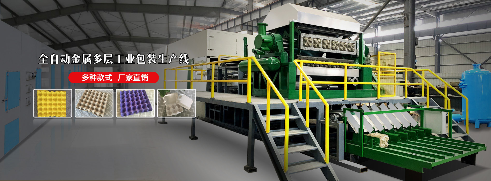 主要產品有:各種大中小型蛋托機,流水線,整套設備;紙漿模縮機,包裝機,定型機;各種模具蛋托成品,烘干鐵托盤,晾曬珠托盤以及各種蛋托機配件。產品規格齊全,質量精良,銷往全國各地并遠銷美國、俄羅斯以及東南亞一些國家和地區,深受國內外用戶的信賴。